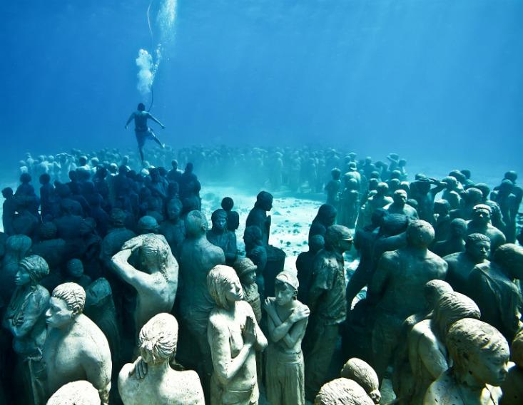 One example of such functional sculpture is Jason deCaires Taylor’s mesmerizing and eerie underwater sculptures that serve as ready-made marine habitats. He now has several submarine sculpture parks, including MUSA, the Museo Subacuático de Arte (Underwater Art Museum; see image above), which is essentially a museum and reef composed of more than 500 sculptures. (Taylor’s work is also one of many kinds of art that highlight damage humans do to the environment; see Becca Cudmore’s earlier Facts So Romantic post for more examples.)