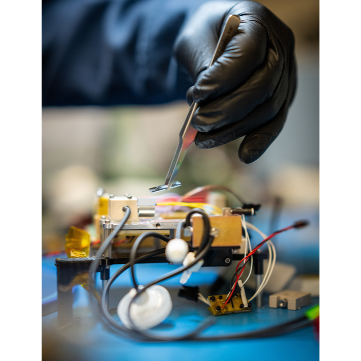 After a few years working together with researchers from Florida International University, Arnold zeroed in on a handful of molecules. “There were very unique VOCs being created in the body before, during, and just after a seizure,” he says—and they weren’t present at any other times. He narrowed the selection down to the three “primary VOCs” that are always present regardless of the type of seizures a person is having. With that information, he contacted Sandia National Laboratories, a government research institution that is part of the U.S. Department of Energy’s National Nuclear Security Administration.