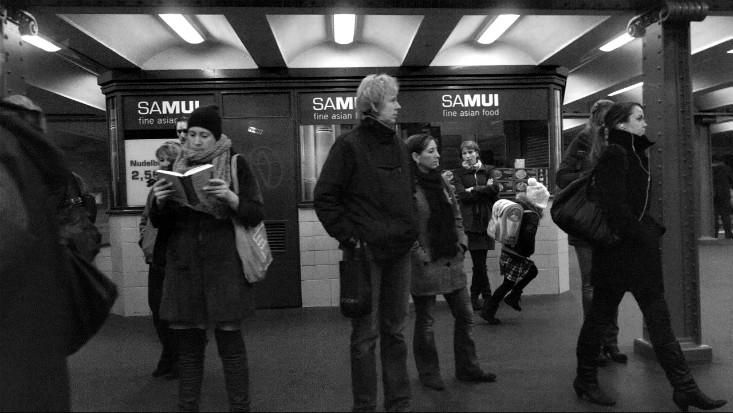 This two-minute excerpt is one small piece of the Grand Central clip; the entire video runs almost 11 minutes, showing a scene that only lasted about a dozen seconds in real time. If you were standing next to Magyar when he shot each scene, rushing into a station at close to 30 miles per hour, you probably wouldn’t have given a second thought to two guys laughing at some shared joke, or a pair of girls running across the platform at Alexanderplatz. There wouldn’t have been enough time. But through Magyar’s lens, these actions have been practically frozen and made meaningful.