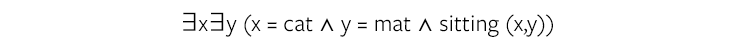 Literally translated, this reads as “there exists variable x and variable y such that x is a cat, y is a mat, and x is sitting on y.” Which is no doubt part of the puzzle. But does this get us close to understanding what it is to think that there is a cat sitting on the mat? The answer has turned out be “no,” in part because of those constants in the equation. “Cat,” “mat,” and “sitting” aren’t as simple as they seem. Stripping them of their relationship to real-world objects, and all of the complexity that entails, dooms the project of making anything resembling a human thought.