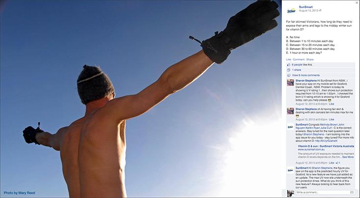 This winter—June and July in Australia—the Cancer Council Australia is urging many people to dump the sunscreen and hat to catch some rays, after years spent advising the opposite. The about-face—exposing both sides of the body is advised—especially targets darker residents like Verma and those who live in seasonally low-light southern cities including Adelaide, Sydney, and Melbourne, where the UV index averages below 3 in their coldest months.1 Regional alerts will remind schools that children should remove their legionnaires-style hats that are required the rest of the year. One public service posting from the partially government-supported SunSmart program on Facebook even shows a shirtless, pasty white man with arms outstretched, soaking up golden rays. The image would appall United States dermatologists, today expanding their campaign against any unprotected exposure to the sun.
