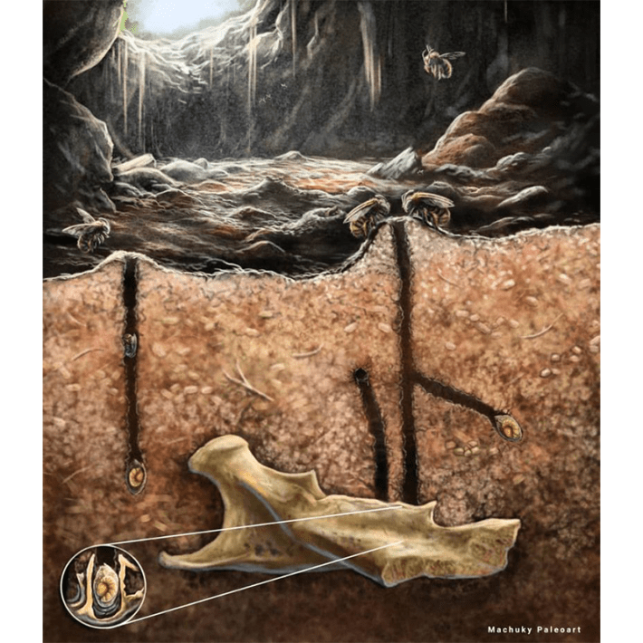 These findings mark the first recorded instance of bees laying eggs in bones, according to a paper published today in Royal Society Open Science. The ancient bees seem to have crafted these tiny nests—each smaller than a pencil eraser—by combining their saliva with dirt. These clandestine structures were built sometime within the past 50,000 years, the researchers estimated, a period known as the late Quaternary. The cozy confines may have kept the bee larvae safe from predators like wasps.