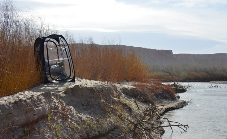 To set up an EEG lab in the desert, Hopman bought enclosures—“sports pods”—to keep the subjects and the equipment safe. After a day of hiking, the participants would climb into the clear plastic pods, which were set up along a riverbank. With a cap full of EEG electrodes over their heads, they would proceed to have their brain waves recorded.
