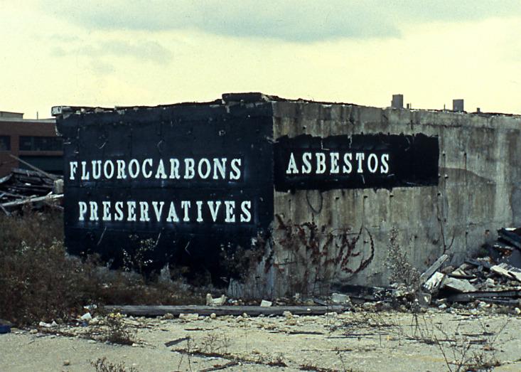 Once described in The New York Times as “an artist who works not only in New York, but with New York,” John Fekner uses his work to alert people to harmful materials in their community. One of his projects, Warning Signs, identifies the toxic substances found in New York City with phrases like, “Asbestos,” “Attack of the Toxic Tanks,” and “No Transportation of Nuclear Waste.” Fekner brings attention to local waste because as a painter, he writes, “you act as the eye of the community, for the community.”