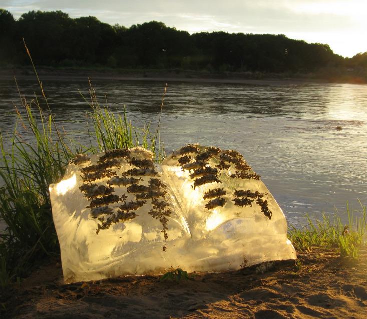 Since 2007, Basia Irland—a sculptor, poet, installation artist, and professor emerita at the University of New Mexico, in Albuquerque—reminds people that it is possible to play a beneficial role in the local ecosystem. Acting as a seed-disperser herself, the artist carves the shape of books from blocks of frozen river water, and within them places native seeds. She returns each “ice book” to its source stream, where it melts and releases the contained seeds. Each of Irland’s “book launches,” ranging from Ohio to Iran to Spain, involve the guidance of stream ecologists and botanists to ensure that the species chosen are good fits for each river system.