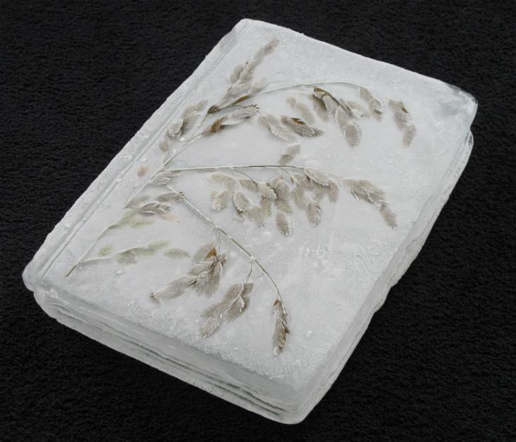 In her description of Ice Receding/Books Reseeding, Irland writes that as her seeds turn to plants along the riverbank, they sequester carbon, mitigate floods and drought, and filter out pollutants, thereby helping “riverside organisms, including humans.”
