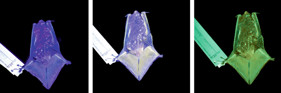 Six species of North American bats recently managed to surprise researchers who learned that the flying mammals emit an eerie green glow after being illuminated with ultraviolet light. Checking 60 separate museum specimens, scientists working at the Georgia Museum of Natural History found that all of them glowed a shade of green under the ultraviolet light. Although several insects, plants, and mammal species—including flying squirrels and pocket gophers—have been shown to glow, this is the first time that researchers have documented the phenomenon in North American bats. They published their findings in Ecology and Evolution.