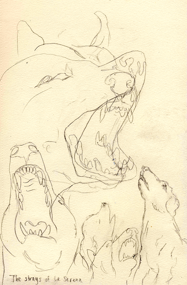 Our group of astronomers took in the naked mountains by the sea. We had flown into the La Serena airport at noon, and found a parched landscape. What sparse vegetation there was survived by drinking coastal fog. Sleeping dogs melted in the sun and dotted the sidewalks beneath knotted telephone wires. In the busy town bazaar, an ancient man stood stooped by his cargo, dripping sweat, while two wolfish dogs sat on top of his empty car, a kind of primal security system.