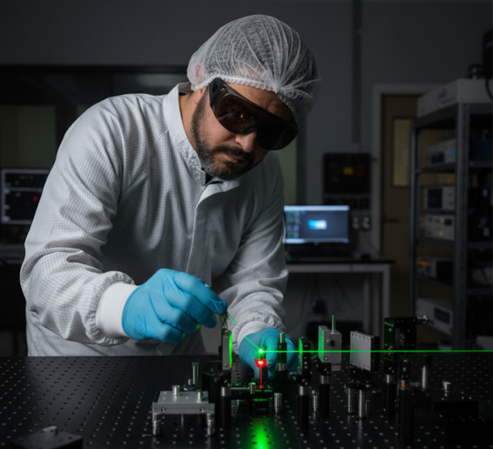 Usually, large cumbersome crystals are needed to facilitate this type of frequency change efficiently. But Nauman’s team tried to recreate the effect efficiently on the nanoscale using human-made materials called metasurfaces, ultrathin layers of patterned nanostructures smaller than a wavelength that affect light in a way few natural surfaces can.
