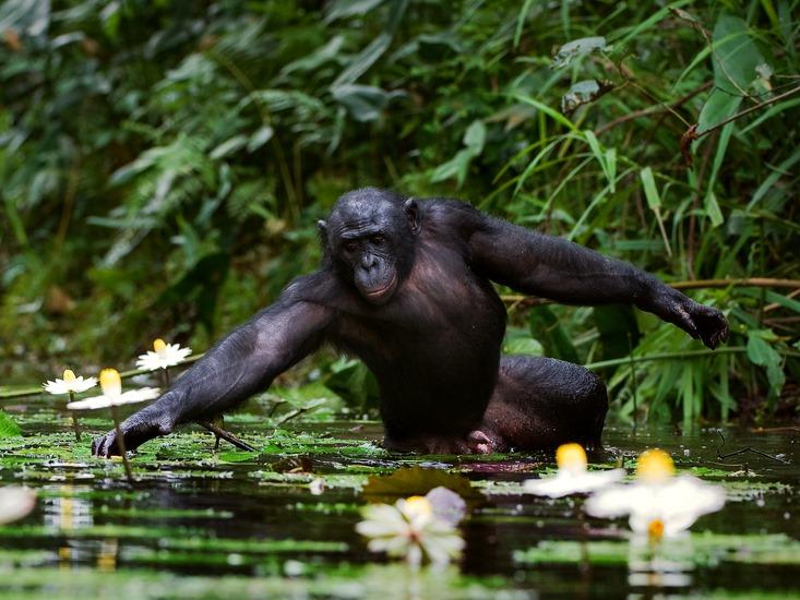 A bonobo, a close relative of the chimpanzee, collecting water liliesSergey Uryadnikov via Shutterstock