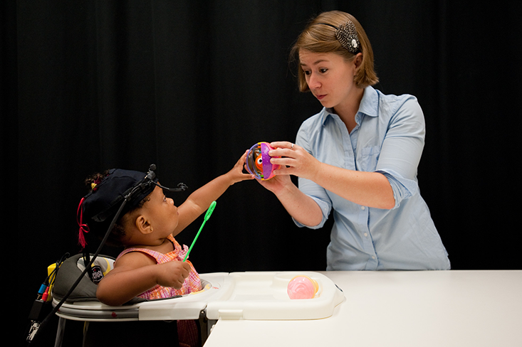 Similarly, Kidd’s experiment was designed to track the amount of information the babies had at any given time—thus allowing Kidd to control the amount of novelty—and also to limit the babies’ choices. She used 7- and 8-month-olds, she says, because they hit the sweet spot of being able to support the weight of their own head, but they’re not yet learning to walk. Nothing is more interesting to a baby learning to walk than walking is, she says. “You can’t compete with that.”