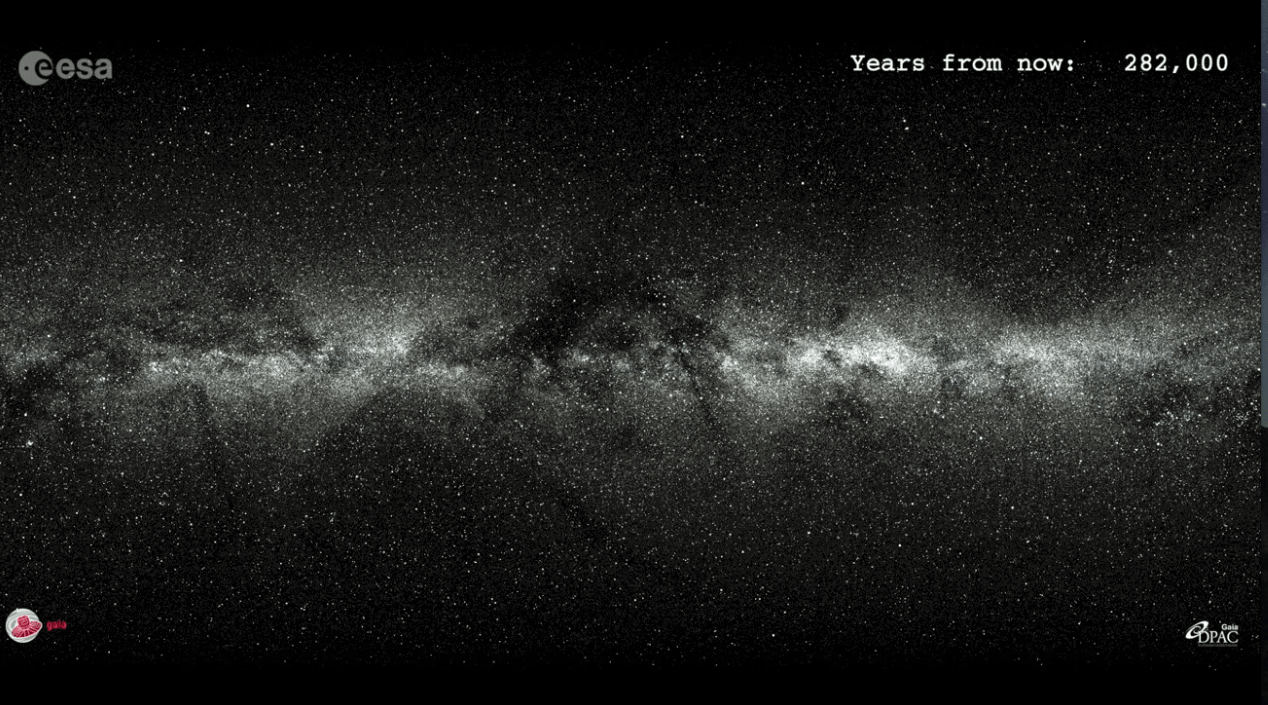Lead image: A still from a projection showing how the positions of some 2 million stars measured by the Gaia satellite are expected to evolve in the future. Credit: Copyright: ESA/Gaia/DPAC, CC BY-SA 3.0 IGO