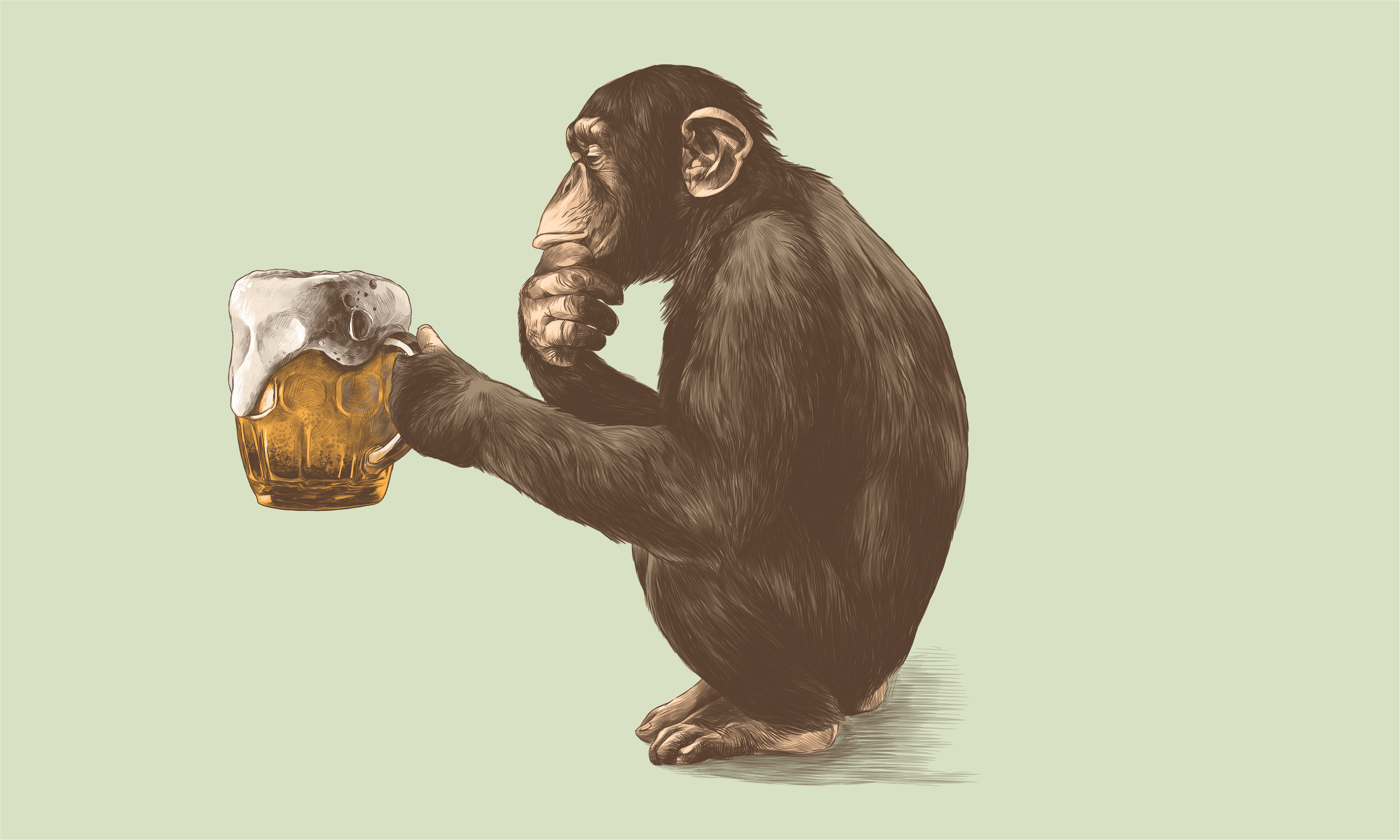 A biologist at the University of California, Berkeley, Dudley spent a long time studying primates in Panama. He reports seeing intoxicated and emboldened spider monkeys going “bipedal and charging the comedor, opening the refrigerator, grabbing a loaf of bread, and storming out.” In The Drunken Monkey, Dudley also reiterates Darwin’s claim that one could attract African baboons with strong beer, and how Darwin once wrote his friend W.M. Moorsom about a monkey held captive in a pub by the owner who became a complete alcoholic (the monkey, although perhaps the pub owner, too).