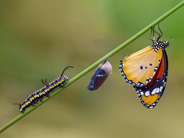 Analyzing the genes of multiple species added a huge new dimension to the idea of “butterflies,” because it revealed not just the species themselves but also the relationships between them. Going back 70 million years, a burst of diversification ensued. Butterfly subfamilies appeared with major evolutionary inventions as a result of high positive selection (the tendency of beneficial traits to increase in a population), which is the overall driving force of adaptive evolution. Another burst, an explosive radiation in butterfly species, came about five million years ago.