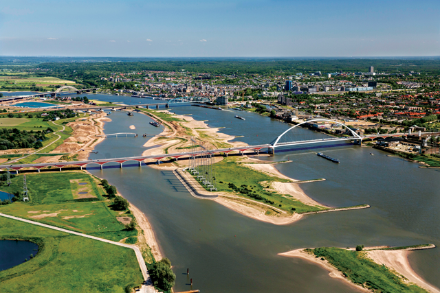 And engineer they did: In the aftermath of the flood, the Dutch redoubled their efforts to battle the sea, creating an enormous flood-control system known as the Delta Works. A modern engineering marvel, the Delta Works—built between the late 1950s and the 1990s—consists of nine dams and four storm barriers that have closed off estuaries and substantially reduced the Dutch coastline by about 700 kilometers. Delta Works has served the Dutch well for decades, but extreme flooding in the ‘90s caused mass evacuations and fueled rising concerns about climate change and sea-level rise. Dutch water managers saw limitations to “hard engineering” approaches like dikes and barriers in a rapidly changing and increasingly unpredictable climate, so they took a vigorous new approach.