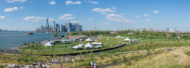 The flat topography of the low-lying south end of Governors Island was radically altered. Carefully fortified hills were built with debris from the imploded Coast Guard buildings. While these hills protect natural elements on the island like trees, shrubs and grass from the deleterious effects of saltwater inundation, they also provide an impressive vista of New York Bay and lower Manhattan. The park’s design was tested by Hurricane Sandy and it passed with flying colors; unlike other parks in the region, Governors Island survived the storm virtually unscathed.