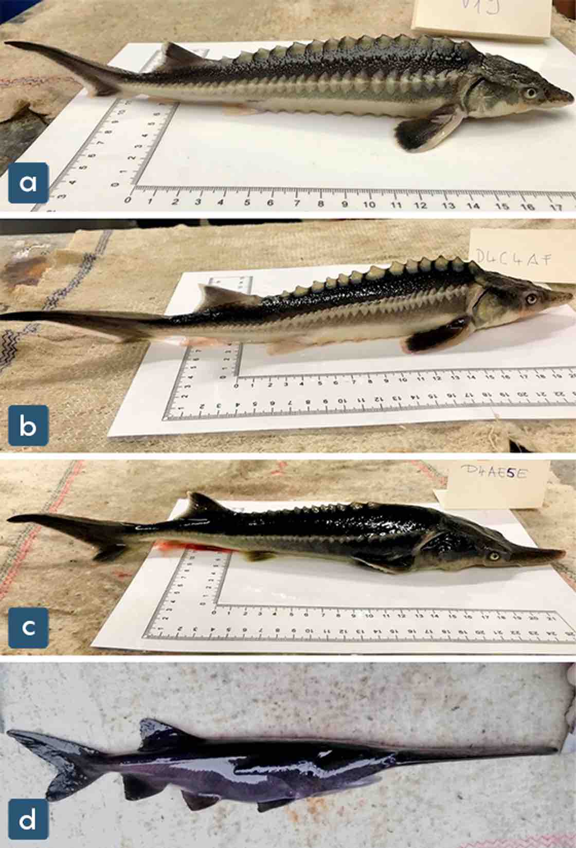 As Bercsényi’s team described it in their July 2020 paper in Genes, some of the hybrids have three copies of each chromosome, a half-genome from each parent. But other hybrids have five copies of each chromosome: They somehow received the equivalent of their sturgeon mom’s full genome plus a half-genome from their paddlefish dad. The bodies of the sturddlefish combine characteristics from both parents, but the ones with more sturgeon DNA look more like their mother—they have more of the distinctive sturgeon scales called scutes, for instance.