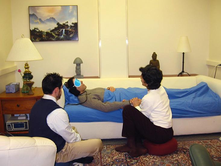 On the day of his first session, after crushing and throwing away his last pack of cigarettes, he lay back on a comfortable couch in a warmly lit room decorated with Buddha statues, pulled a blinder over his eyes, and listened to pleasant, occasionally Indian-sounding music on earphones. Doctors monitored him, periodically asking how he was doing and taking his blood pressure. “It was comforting to know they were watching me,” Kreitman said.