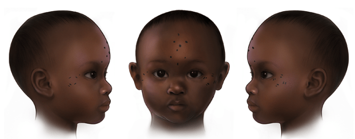 The researchers identified tattoos on remains from 27 individuals, the majority of whom were under 11 years old and from the Kulubnarti site. More than one in five people from this site had tattoos, which were primarily located on the forehead, cheeks, or temples, and incorporated patterns of dots and dashes that often formed diamonds or squares. They may have been formed with a single puncture from a knife, instead of needles, as was a common practice in the region during the pre-Christian period. During that time, dotted diamond patterns across people’s bodies and crisscrossed patterns on people’s hands appeared to be common in Nubian tattoo art.