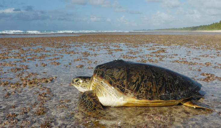 Having carried out the full extent of her duties as a mother, this turtle had completed a ritual that’s played out countless times on Diego Garcia, a footprint-shaped atoll in the Indian Ocean’s Chagos Archipelago. Green sea turtles have used the atoll as an incubator for hundreds or thousands of generations, or perhaps longer. Each generation disperses and returns; precisely where these now-endangered reptiles go, what route they take to get there, and how they navigate, is a mystery.