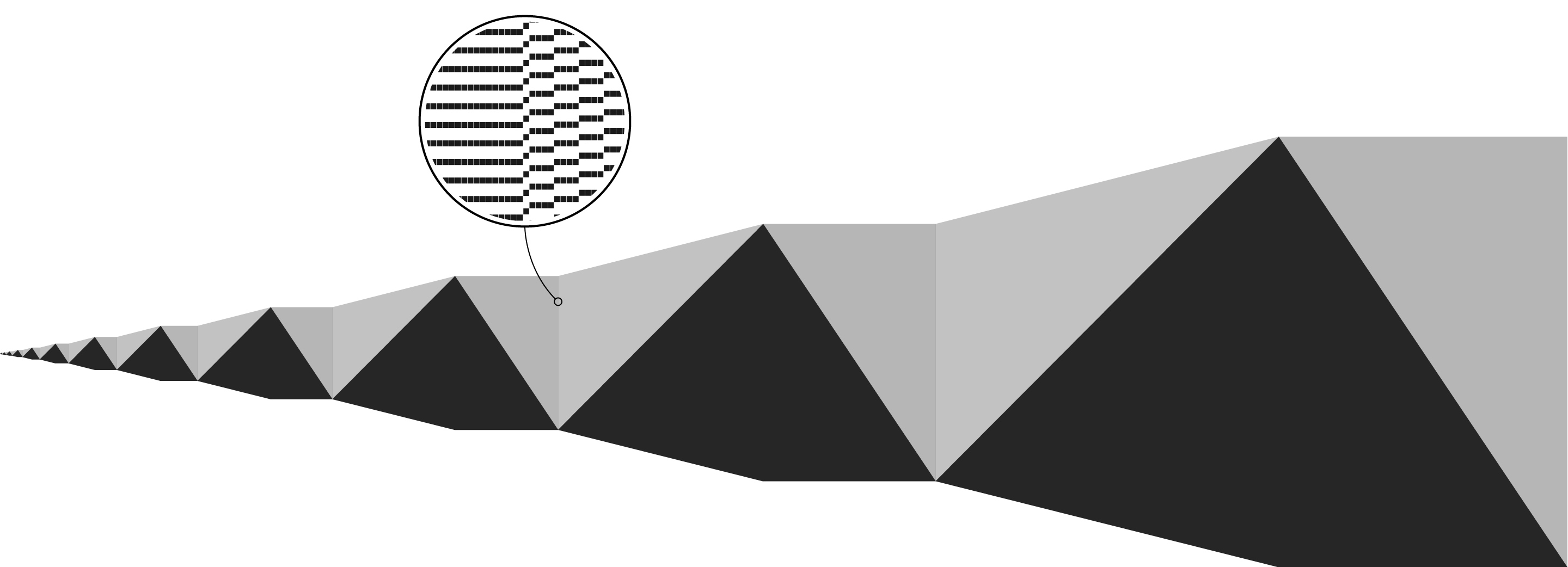 Lead image: A visualization of the longest-running five-rule Turing machine currently known. Each column of pixels represents one step in the computation, moving from left to right. Black squares show where the machine has printed a 1. The far right column shows the state of the computation when the Turing machine halts. Credit: Quanta Magazine; source: Peter Krumins