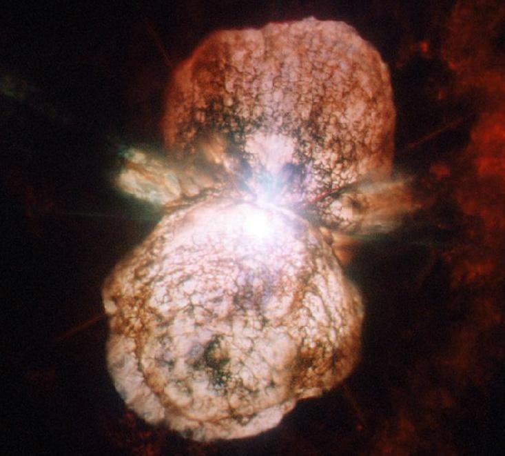 Fusing iron into heavier elements doesn’t produce more energy, as the fusion of lighter elements does—when iron fuses, it absorbs energy, which is actually a good thing. If elements always fused into heavier elements, then the first stars would have simply fused indefinitely, until they became neutron stars, enormous, undifferentiated orbs of nuclear material. But because the fusion of iron actually cools the core of a star, the chain of fusion shuts down. After their fusion stopped, the first big stars eventually collapsed under their own weight, which triggered supernova explosions. The outer layers of each star, rich in carbon, nitrogen, and oxygen, were cast into interstellar space, and only the cores of these stars collapsed, yet again, into neutron stars.