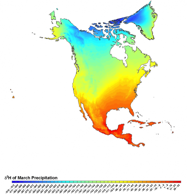 Isoscapes have perhaps been most widely embraced by ecologists, who use them to track the movements of migrating animals. “How animals that migrate separate across the planet is one of the great mysteries,” says Peter Marra, the director of the Smithsonian Migratory Bird Center. While scientists know the general patterns of most migrating species, they don’t know the precise paths of individuals or groups—knowledge that’s critical “to understanding everything from their ecology, to their evolution, to doing effective conservation,” Marra says. GPS trackers are helpful, but they can be expensive and are too bulky for small birds and insects.