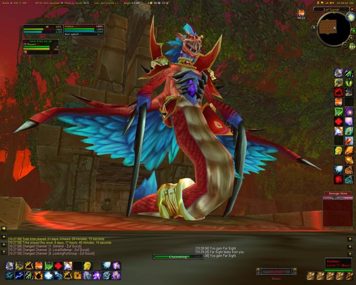 Sept. 13, 2005. A brand new dungeon area called Zul’Gurub was opened as part of a game update. Zul’Gurub was controlled by a boss named Hakkar—a giant serpentine dragon with broad, sweeping wings and flowing blue hair. He stood, perched on a thick tail, with two long, gleaming scyth arms at the back of the dungeon, waiting for players to venture inside.