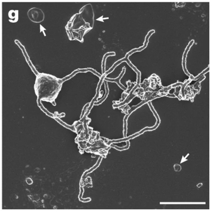 The effort to culture Lokiarchaeota started way back in 2006. Hiroyuki Imachi and his colleagues at the JAMSTEC decided to try a new approach to growing them. They built a special closet-sized chamber threaded with little pieces of sterilized kitchen sponges hanging along a nylon string. They soaked these sponges in fluids from a deep-sea hydrothermal vent off the coast of Japan. Then they dripped growth media slowly onto the top sponge. Once the first sponge was saturated, the liquid dripped excruciatingly slowly down to the next sponge and so on. Then they waited, patiently. Fourteen years later, in 2020, Hiroyuki and his coauthors reported the first culture of Lokiarchaeota, which they were able to photograph in high resolution.