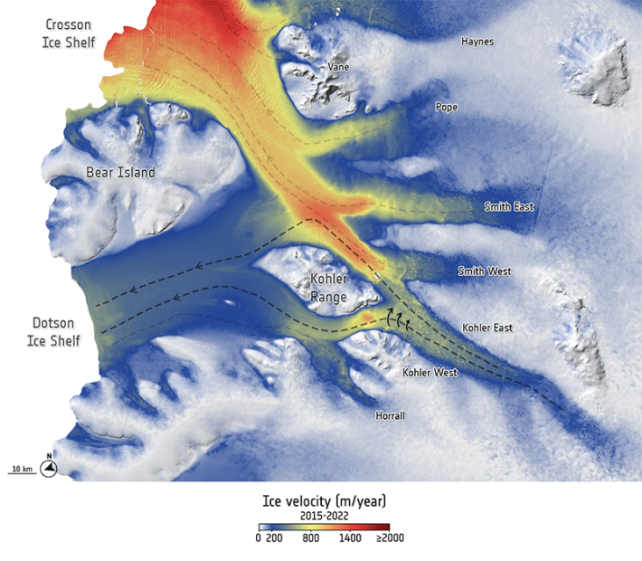Usually, when glaciers come into contact they merge and continue flowing together. They have also been recorded stealing ice from one another, but this is the first time such theft was observed over such a short period. It was previously thought to happen at timescales that were only observable over centuries or millennia. But the new satellite data suggests that at least one big glacier known as Kohler East has been pilfering ice from its slower-moving neighbor Kohler West at a noticeable rate over the course of fewer than 18 years, according to findings recently published in The Cryosphere.