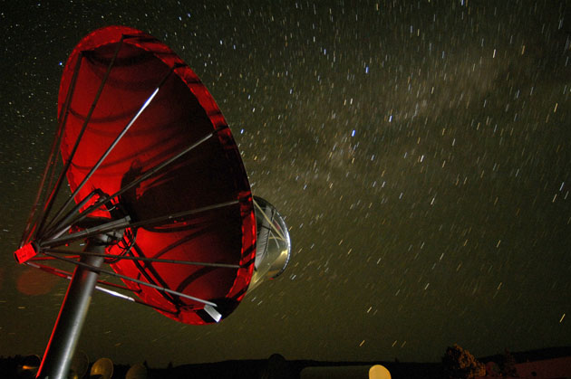 Most of our experiments so far have used large radio antennas in an effort to eavesdrop on radio signals transmitted by other societies, an approach that was dramatized by Jodie Foster in the 1997 movie Contact. Unlike other alien potboilers, Contact’s portrayal of how we might search for extraterrestrials was reasonably accurate. Nonetheless, that film reinforced the common belief that SETI practitioners paw through cosmic static looking for unusual patterns, such as a string of prime numbers. The truth is simpler: We have been searching for narrow-band signals. “Narrow-band” means that a large fraction of the transmitter power is squeezed into a tiny part of the radio dial, making the transmission easier to find. This is analogous to the way a laser pointer, despite having only a few milliwatts of power, nonetheless looks bright because the energy is concentrated into a narrow wavelength range.