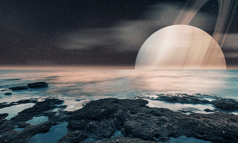 Giant-planet moons can have a downside for life, however. Jupiter’s moons, for instance, are blasted with high-energy particles accelerated by the planet’s magnetic field, the strongest in the solar system (besides the sun’s). This is not an insurmountable problem, as any moon with a strong enough magnetic field could protect itself from this radiation. Ganymede’s magnetic field could shield an atmosphere, but it doesn’t have much of one. And many gas giants likely don’t have magnetic fields nearly as strong as Jupiter’s. Saturn’s, for instance, is far weaker by comparison, less than 5 percent as strong as Jupiter’s, due simply to its lower mass and its interior composition.