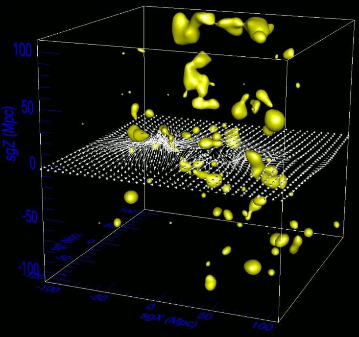 As the Universe expanded, turbulence smoothed out into uniformity. The homogeneity on all levels translated into nearly uniform density on the scale of the entire cosmos. But viewed on a smaller scale, in places where the amount of hydrogen gas happened to be slightly greater, the clumps coalesced into galaxies.