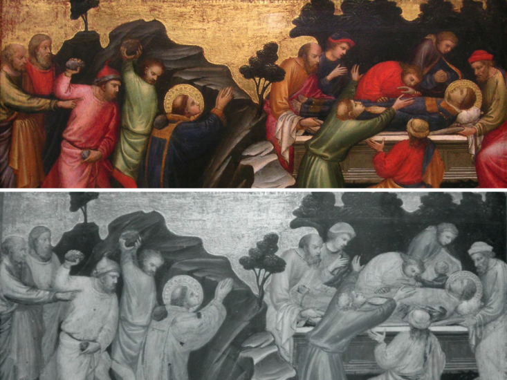 Falco bought a used Canon 30D on eBay and converted it into an infrared camera and has used it to photograph paintings of interest in museums around the world: Washington, DC’s, National Gallery of Art, the State Hermitage Museum in St. Petersburg, and Tokyo’s National Museum of Western Art, to name a few. All told, he spent about $2,000. Ideally, he takes pictures in both the visible and the infrared, loads them into Photoshop, and then toggles back and forth between the two, looking for telling differences.