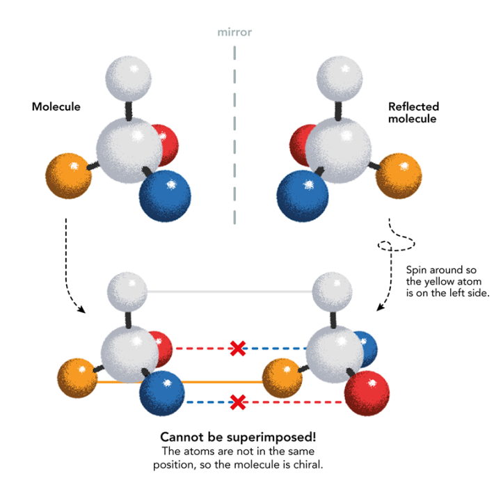 But we do know that living organisms are exquisitely sensitive to this handedness. Feed bacteria with left-handed amino acids, and they’ll incorporate them into their proteins. Feed them right-handed amino acids, and they are likely to ignore them, even though these are the same molecules but inverted as though in a mirror.