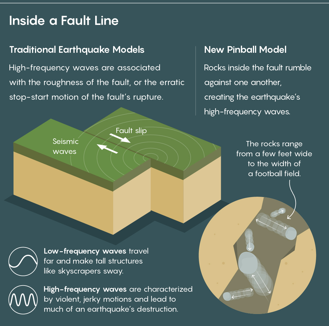 Now a pair of geoscientists from Brown University have conjured up their own origin story. Using mathematical models inspired by landslides and avalanches, the researchers argue that these damaging high-frequency waves are caused not by the slippage itself, but by geological pinball games taking place within the fault.