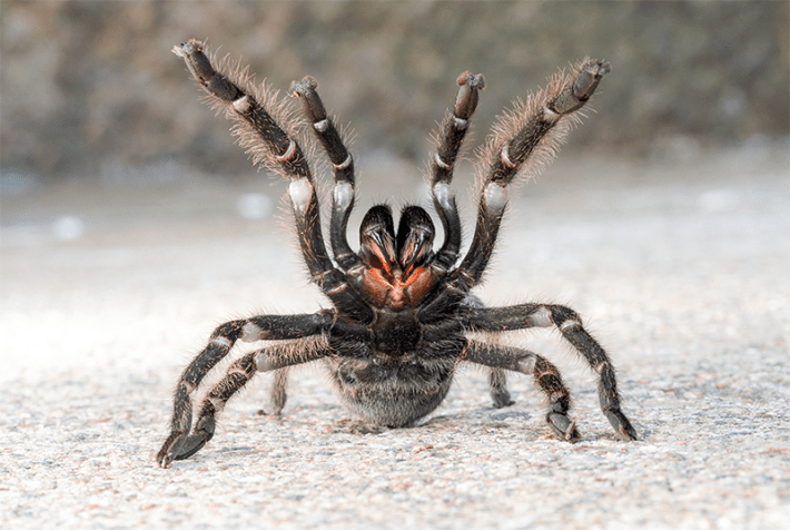 Tarantulas are a diverse family of spiders: More than 1,000 species are known around the world, and they come in many sizes, exhibit a wide variety of behaviors, and live in many different habitats, including tropical, subtropical, and desert regions. Tarantulas of the Americas are generally more docile and have less potent venom than those in Europe and the Middle East, says Zamani. Tarantulas can attack prey or disable predators either using their fangs, with which they can inject venom that paralyzes, or by shooting thousands of poisonous hairs from their abdomens. If these hairs get into the airways of smaller mammals, such as rodents, the hairs can kill them.