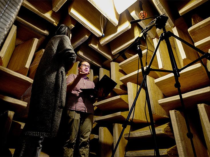 I am sitting in an anechoic chamber, the only one in New York City. Nestled in the hip, angled building of The Cooper Union for the Advancement of Science and Art, the anechoic chamber is where acoustics students, headed by the aptly-named Melody Baglione, conduct research—it’s the equivalent of a zero-gravity chamber, only in this case, the variable is sound. The room is designed to be as noise-free as possible; its chunky walls completely absorb reflections of sound waves, and insulate the space within from all exterior sources of noise. While the chamber is not exactly silent, per se—at 20 decibels, the ambient noise level is quieter than a whisper, but twice as loud as a pin drop— it’s almost certainly the quietest space in New York.
