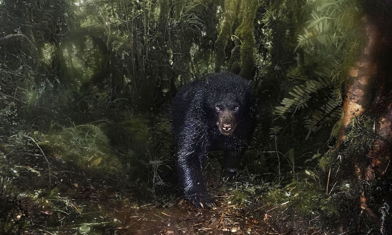 Fortunately for Santiago Monroy García, the picture was taken with an elaborate system of camera traps that allowed him to observe and photograph the bear from a distance, and without significant disturbance to its natural habitat. Monroy García, whose image won the “Animals” category of the Close Up Photographer of the Year competition, noted that the frigid temperatures, dense foliage, and humidity of the Ecopalacio Nature Reserve actually helped generate this shot: A few raindrops on the camera lens created subtle textures and blurs that rendered the bear in sharp focus, giving its surroundings a dreamlike, haunted appearance.