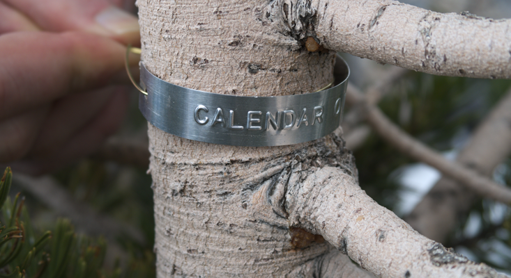 In order for that to happen practically, the time told by the trees will need to be transmitted to the city. The bristlecone sapling on Mt. Washington will be rigged with an electronic dendrometer, an instrument that wraps around the tree trunk, precisely measuring diameter. Data from the dendrometer will be relayed to a computer. The computer will calculate an exact date and time based on the tree’s real-time change in girth. The circuitry will control a monumental electro-mechanical clock situated at the Nevada Museum of Art.