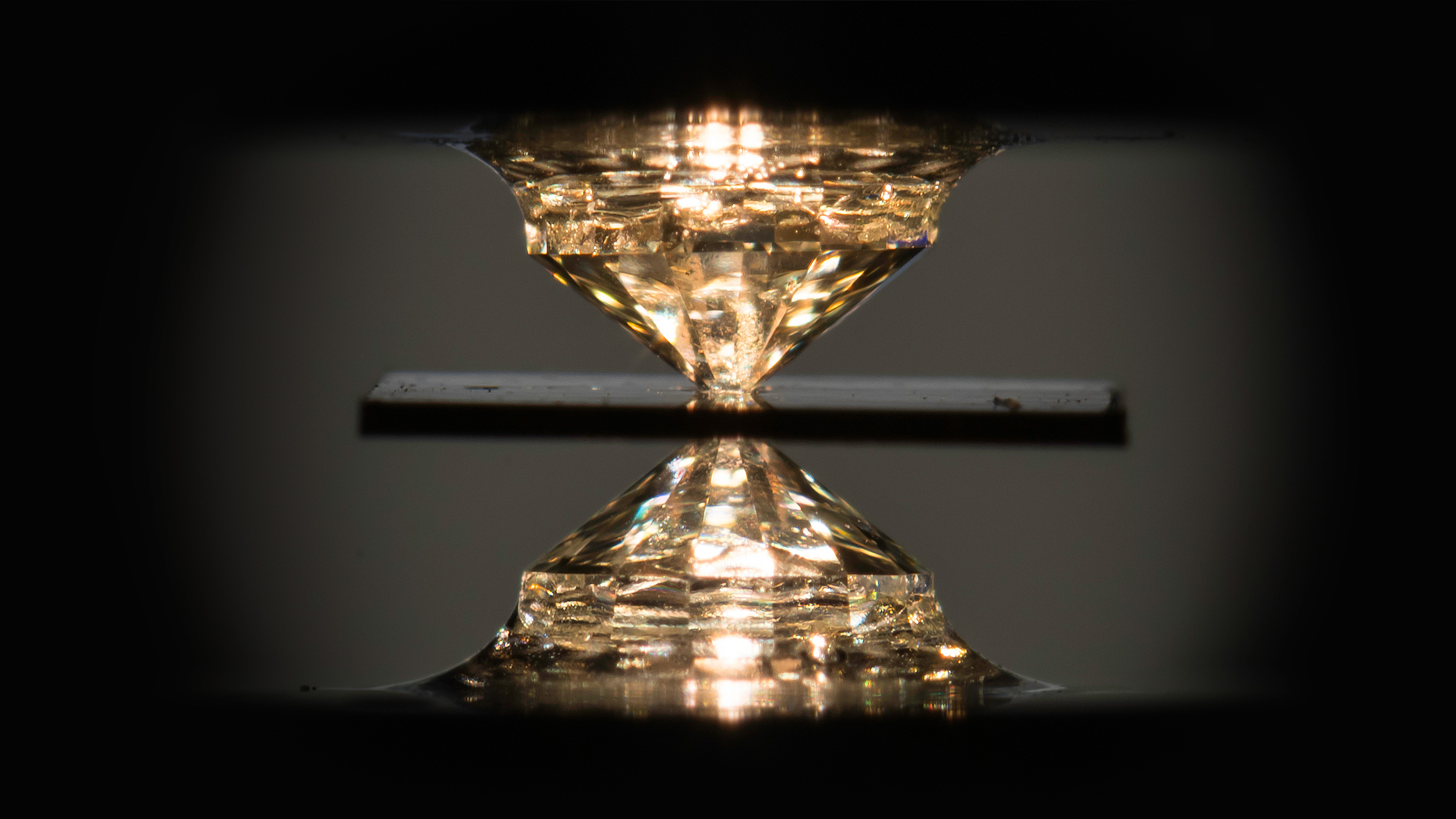 Lead image: A novel metallic compound of hydrogen, carbon and sulfur exhibited superconductivity at a balmy 59 degrees Fahrenheit when pressurized between a pair of diamond anvils. Credit: J. Adam Fenster / University of Rochester