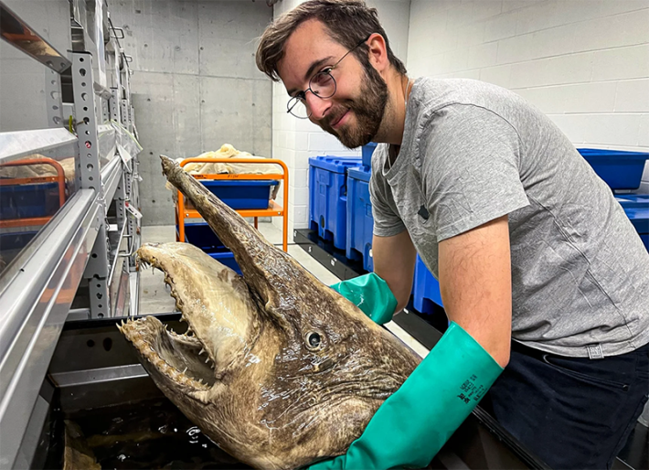 Gayford’s team had significantly more advanced technology available. They measured the surface area and volume of 54 different shark species, ranging from a 9-inch pygmy shark, one of the world’s smallest, to a whale shark, the largest living fish. But rather than skinning them, they took CT scans of high-quality museum specimens to create detailed virtual reconstructions. For those species too large to fit in a CT scanner, they used photogrammetry software, which stitches together many photos of an object’s surface to create a 3-D model. (In one case, the object in question was a 37-foot-long whale shark that lives at the Georgia Aquarium.) They then loaded the models into 3-D processing software called Blender, which was originally developed for rendering objects in video games. To calculate a shark’s surface area, Gayford just had to click a button.