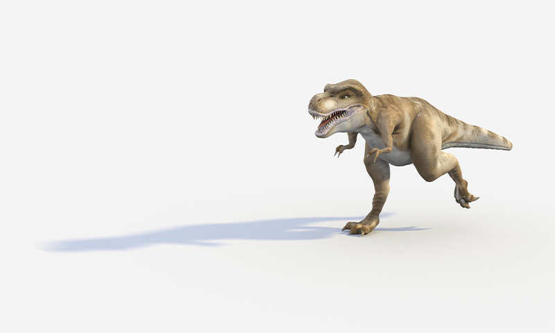 It’s understandable to assume long legs were selected for their speed. But evolution doesn’t run predictable courses. “We might look at animal growth and say, ‘Well, they have longer legs than this guy, so they must have been faster,’ ” Dececchi says. “But no, they’re too big for speed to be a problem. There must be another solution for this.” That solution is energy efficiency. The wolf, for instance, has no reason to pursue the moose; he could do it but there’s plenty of prey easier to catch. The same is true for T. rex. Its steady gait allowed it to range widely in a day, where it preyed on smaller dinosaurs like ceratopsians and hadrosaurs, and, contrary to its fierce reputation, sometimes scavenged on carrion. T. rex also hunted in packs, allowing it to corner and kill some of the smaller and faster dinosaurs. The big theropod consumed over 400 pounds of meat per day. As a forager, it was able to gain several more tons of meat per year than it would have as a sprinting hunter.