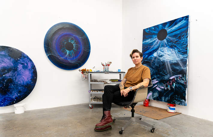 Lead image: Cycle, 2023, by Lia Halloran. Oil on panel, 36 x 36 inches. Photo by Adam Ottke.