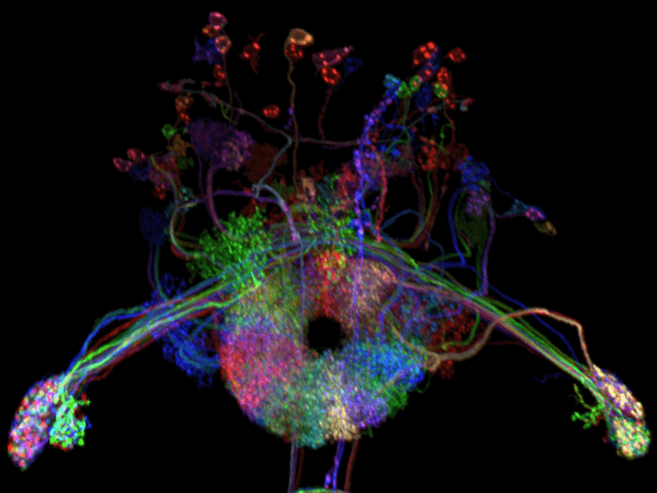 This is where Jayaraman comes in. The fruit fly, it turns out, also has a region of its brain dedicated to maintaining a sense of direction. Jayaraman characterized it with his colleagues less than a decade ago. Incredibly, it is a doughnut-shaped ring exactly like the structure of the theoretical ring-attractor network. Any given cell in this ring of cells is only active when the fly is facing a particular way—exactly like head-direction cells in rodents (and, presumably, in us). This discovery provides a terrific opportunity, not only to test a model that scientists developed for one animal using a completely different animal, but also to identify a common rule that a striking variety of brains use.