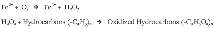 The iron was useful in more ways than one. These early lifeforms consumed carbon dioxide and sunlight to produce complex organic hydrocarbon molecules, and, as a byproduct, oxygen. Unfortunately, this oxygen was toxic to them. This is where the iron ions again came in handy: They scavenged toxic oxygen exhaled by the cyanobacteria into ocean water through an electron exchange process that produced triply charged iron atoms (Fe3+), and chemical species containing oxygen. The reaction looked like this: