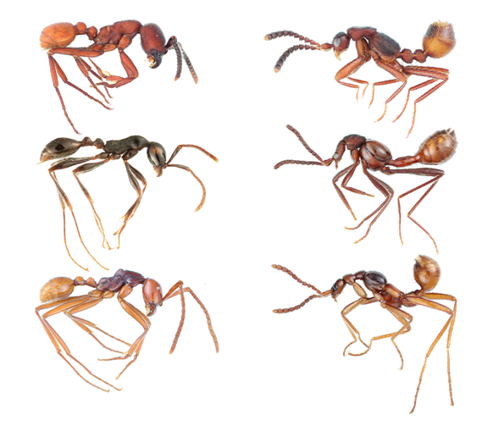 To better understand the point of origin for all of these different adaptations, Parker recently looked closely at the beetles’ chemical defense system. All lineages of rove beetles have an abdominal gland that produces chemical secretions. In some species, this gland emits a repellent to ward off predators, but in others, it produces substances that intoxicate ants, rendering them defenseless. Over time, Parker found, the gland’s purpose evolved from a defense mechanism to a tool for infiltration, enabling the beetles to manipulate their ant hosts. Once the beetles gained access to the ant nests, they evolved the other adaptations that enabled the ant-beetle symbiosis. In some cases, they later lost the initial adaptation that allowed them to mimic the ants’ chemical signals in the first place.