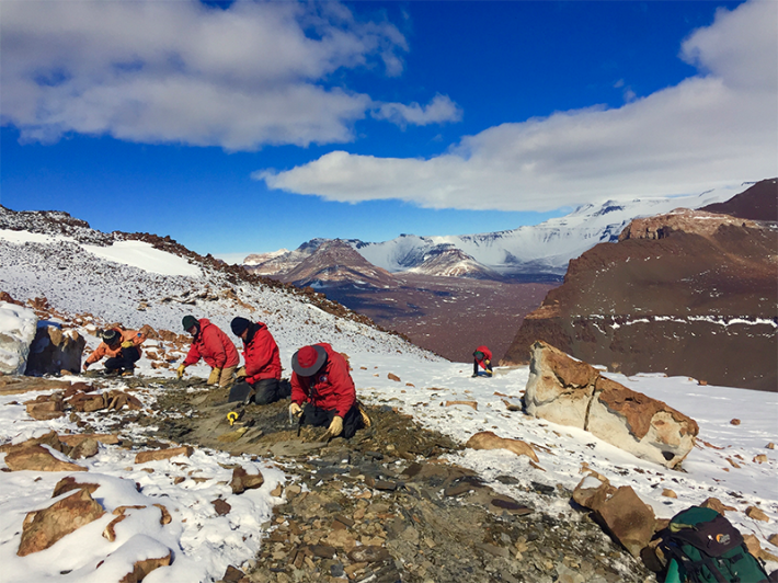 Lead photo: A group of researchers walking to camp on Mt. Fleming, in Antarctica in 2017. Photo by Neil Shubin.