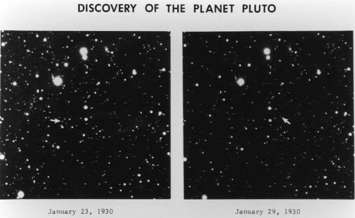 Tombaugh arrived at Lowell Observatory in 1929 and started off by capturing images of possible real estate for Planet X on glass photographic plates. In each spot of the sky, he took two photos a few days apart—a possible planet would travel within the frame in this period, enabling direct comparison. In February 1930, he noticed that an object shifted about 3 millimeters between two exposures. He estimated that this object’s orbit fell outside of Nepune’s, aligning with Lowell’s hypothesis.