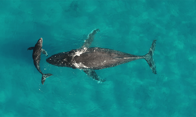 In a shallow lagoon a couple of clicks from the Hawaiian coast, a humpback whale (Megaptera novaeangliae) gives birth. The one-ton baby slips from her gigantic girth and is soon nudged up to the surface of the water to take a first breath. A few minutes later, the mother whale delivers the placenta that nourished her baby for nearly a year. Now it will nourish something else: the food chain that hums through these warm, clear waters.